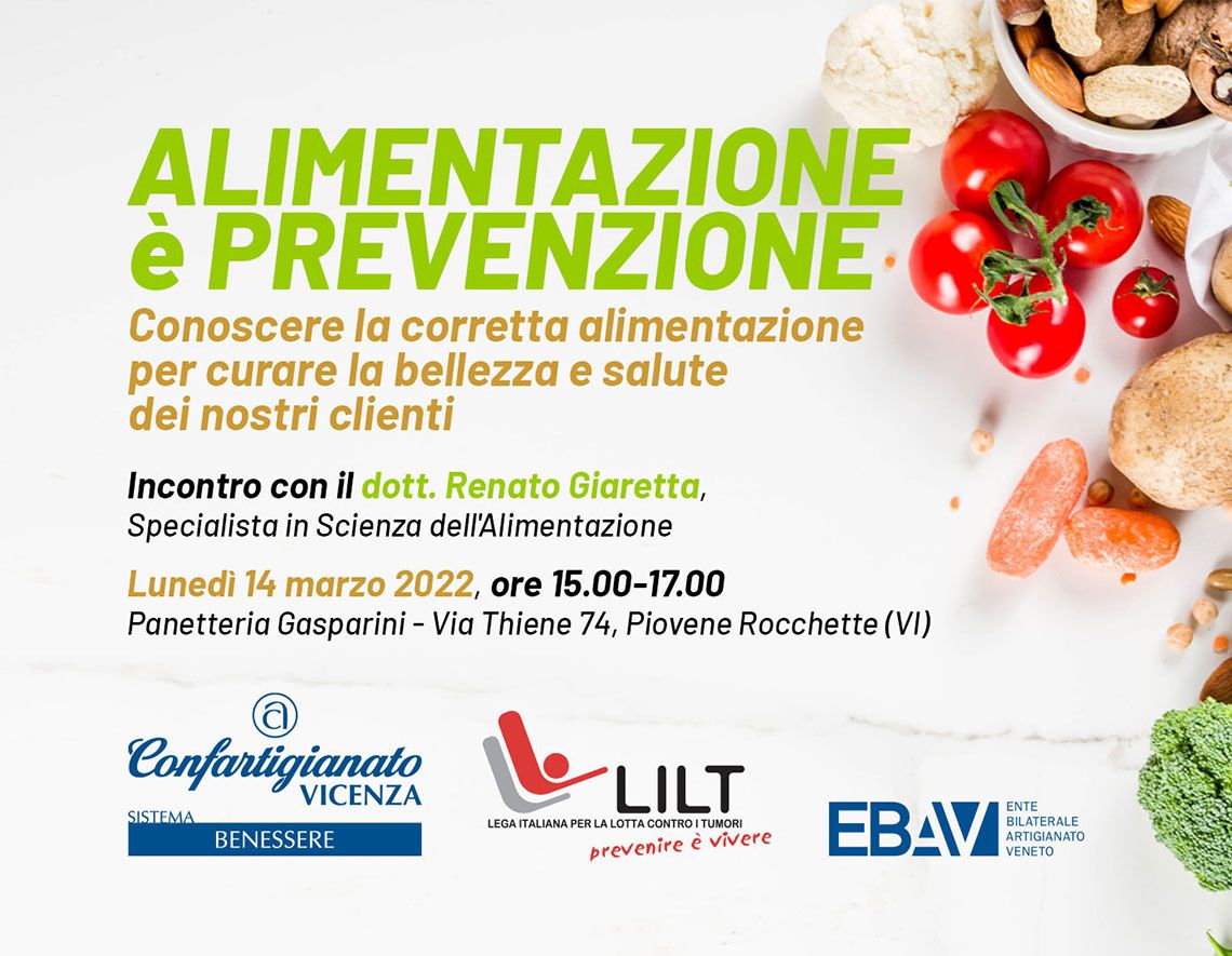 L'evento, organizzato da Confartigianato Vicenza in collaborazione con LILT Vicenza (Lega Italiana Lotta ai Tumori), era rivolto in particolar modo agli operatori del settore del benessere e delle cure estetiche, che sono intervenuti numerosi. Relatore dell'evento è stato il dott. Renato Giaretta, specialista in Scienza dell'Alimentazione.
